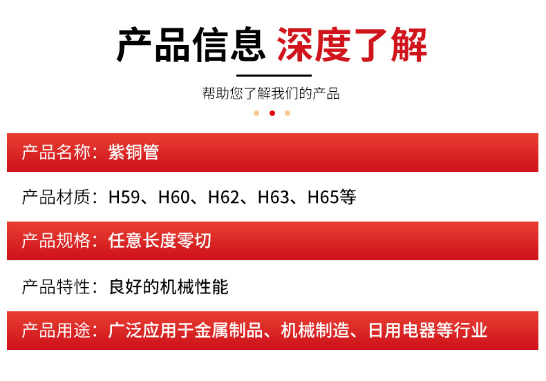 T2紫铜管空调制冷蚊香盘管精密毛细紫铜管导气食品级小铜管C1100T2紫铜管厂家 TP2紫铜盘管 装饰紫铜扁管10*40 25*50 30*30公司专业生产黄铜管、黄铜棒、紫铜管、紫铜棒、磷铜管、磷铜棒、铍铜管、铍铜棒、铜毛细管、铜异形管。主要生产Φ0.6MM-Φ4MM的毛细管,Φ4MM-Φ630mm 普通铜管棒、铜型材、5-600无缝管材、异型扁排。广泛用于电子、仪表、医疗、纺机、航空、船舶、机械和军工等行业,产品遍销国内外。