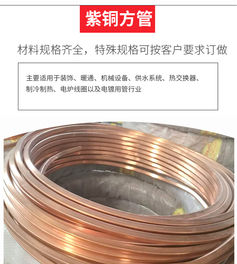 t2紫铜方管-现货批发空调铜管-大口径紫铜方管 国标T2紫铜管C1100无氧铜管厚壁无缝红铜管厂家T2紫铜管,有色金属管一种;是压制的和拉制的无缝管。低温强度高,常用于制造换热设备(如冷凝器等);也用于制氧设备中装配低温管路。无氧铜管直径小的铜管常用于输送有压力的液体(如润滑系统、油压系统等)和用作仪表的测压管等。