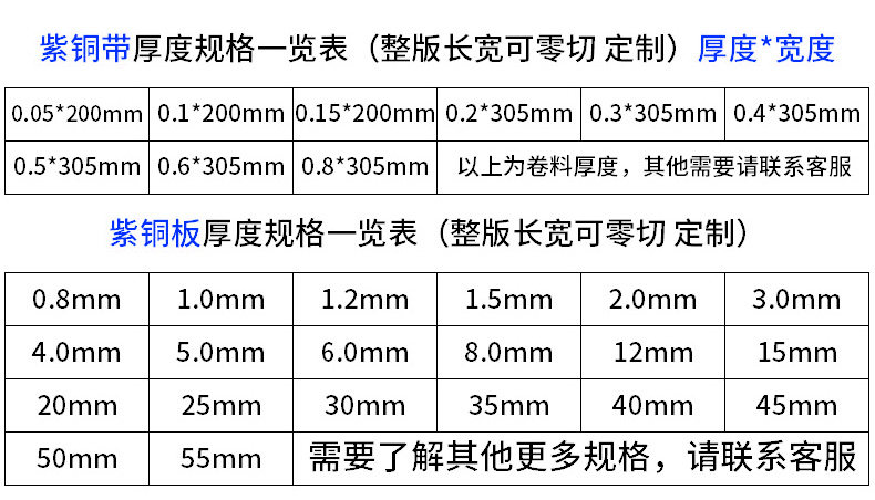 H62、H62、H63、H65、H68、H70、H80、H85、H90、H96、T1、T2、T3、C1100、C5111、C5101、C5191、C5210、TU1、TP1、TP2、TAg0.08、TAg0.1、C1100、C1020、C1201、C1220、C1271、C11000、C2100、C2200、C2300、C2400、C2600、C2680、C2700、C2720、C2800、C2801等。